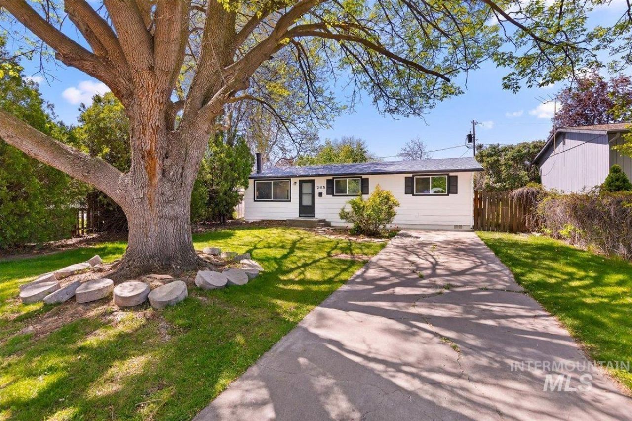 Welcome to 205 Meyer Ave in Nampa Idaho. A charming, single-level home tucked away on a quiet street, thoughtfully renovated from top to bottom with both style and function in mind. Better than new, this home showcases meticulous upgrades throughout, including durable luxury vinyl plank flooring, fresh interior paint, and stylish modern lighting. The fully renovated kitchen is a standout feature, boasting beautiful butcher block countertops, a farmhouse sink, striking tile backsplash and sleek SS appliances offering a space for your culinary skills to shine. Just off the kitchen, youll find a laundry room and versatile flex space ideal for a hobby room or extra storage. The bathroom has been completely transformed with a stunning new vanity and striking walk-in tile shower complete with a rain head fixture. With three well-appointed bedrooms, theres plenty of space for family, guests, or a home office. Comfort is ensured year-round with a new 25K BTU ductless heating and cooling system, while the existing furnace has been serviced and all major components have been replaced providing reliable backup heating during colder months. Step outside to a sizable, fully fenced backyard featuring a cozy fire pit, perfect for relaxing summer evenings. Additional upgrades include a new roof (2021) and updated vinyl windows and exterior paint (2022), adding lasting value and peace of mind.